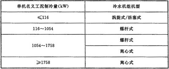 9.2.2 選擇水冷電動壓縮式冷水機(jī)組機(jī)型時,宜按表9.2.2內(nèi)的制冷量范圍,經(jīng)過性能價格綜合比較后確定。