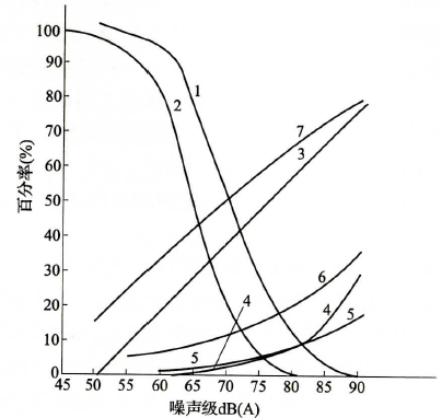 同樣由圖1得知,若以70dB(A)為噪聲允許值標準,工人感到高煩惱的百分率將達到39%,對于集中精神感到有較高影響的百分率為12.4%,對工作速度和動作準確性影響仍不顯著,對語言通訊的干擾則屬于較高的等級。如按70dB(A)的限值來衡量現(xiàn)有潔凈廠房的噪聲,則多數(shù)可以滿足標準。